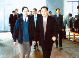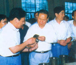 梁省長(前左一)在董事長陪同下視察企業(yè)  原副省長俞興德到生產車間視察工作